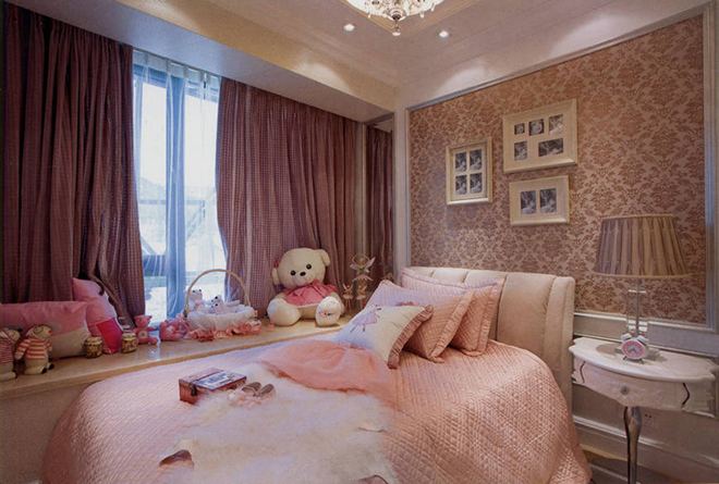 书桌不要太靠近床,背对着床比较好,床如果太靠近书桌,宝宝容易一累就躺到床上去,一不小心便睡着了。同时为了保护宝宝们的视力,儿童房内的灯光一定要充足,选择灯饰时应强调光源的稳定性,采用可调节光线的灯具为佳。