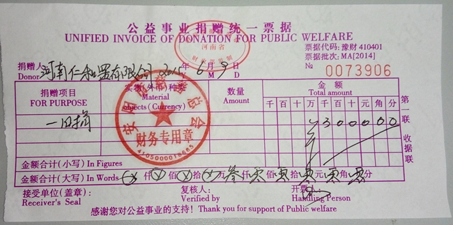 仁和置业向安阳市慈善总会捐赠爱心款3000元