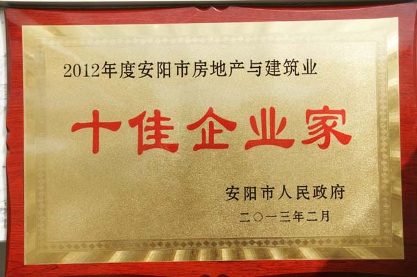 仁和公司荣获2012安阳市十佳房地产开发企业