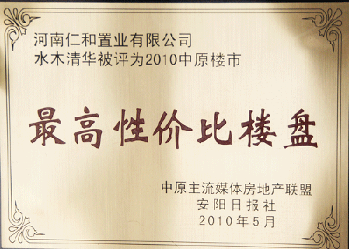 水木清华被评为2010中原楼市最高性价比楼盘...