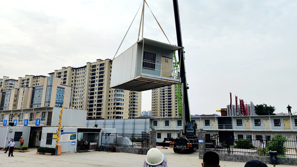 2022年6月3日,水木清华龙熙地项目部轻质活动板房吊装现场...