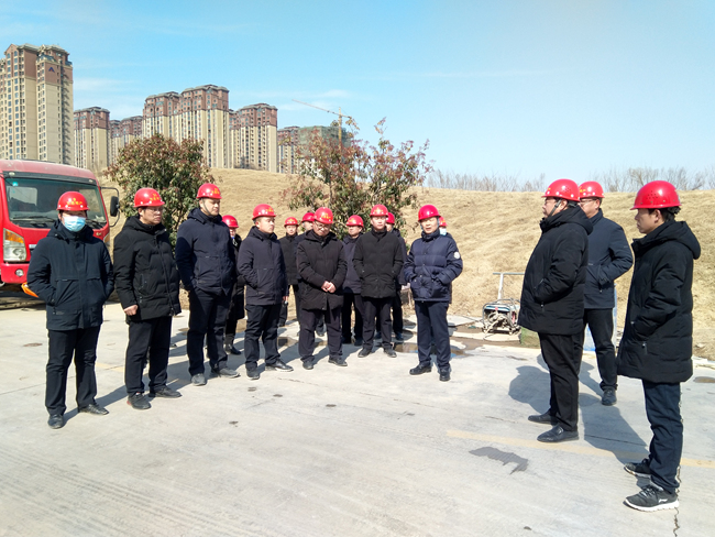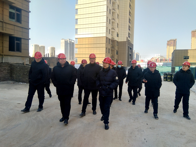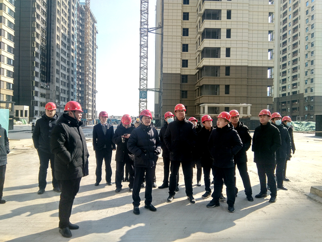 2022年2月22日,公司高层领导赴龙熙地项目施工现场检查指导工作,公司工程技术部等部门人员陪同。领导对各楼栋工程进度进行了查看,对工程技术部抢抓工程进度、确保项目提前完工交房等工作表示肯定。