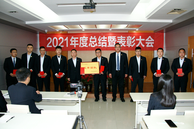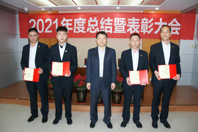 2022年2月28日上午,公司2021年度工作总结暨表彰大会在金豪商务九楼多功能厅隆重召开。大会上,公司总经理作2021年度工作总结、阐述了2022年度重点工作布署,并同工程副总、行政副总、业务副总为获得2021年度优秀团队奖、优秀员工奖、廉洁自律奖、执行力奖、抗洪抢险先进人物奖的员工颁发了荣誉证书。