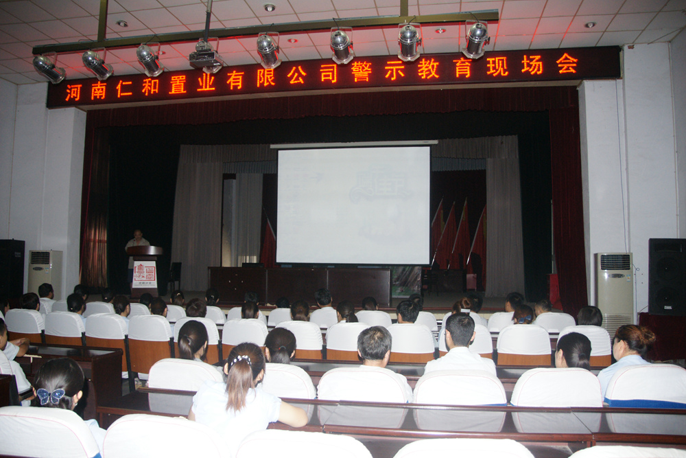 2015年7月10日,河南仁和置业有限公司分两批组织中层以上的领导及重点工作岗位的员工,到安阳市(龙泉)监狱召开“警示教育现场会”。 通过参观及因收受贿赂而走进监狱的服刑人员现身说法,使所有员工的心灵受到很大震撼。通过这次现场会,既加深了员工对廉洁自律的思想认识,又从反面教材中汲取了教训,时刻做到自警、自省、自重、自律,居安思危,恪尽职守,做老实人,办老实事,提高拒腐防变的能力;自觉做到“慎独、慎欲、慎微、慎初、慎友,”不管在什么环境下,何种条件下,都能够守得住物质上的清贫,抗得住酒色利禄的诱惑,顶得住庸俗关系的腐蚀。只有这样,才能始终保持高尚的道德情操,才能在任何时候任何情况下都不逾越制度这条“红线”,不碰廉洁自律这条“警戒线”,不触法律这条“高压线”。