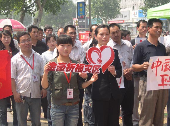 当日,由于捐款活动场面感人,金豪数码广场周边的公司员工及行人也纷纷加入捐款队伍中来,为震区灾民捐款祈福。